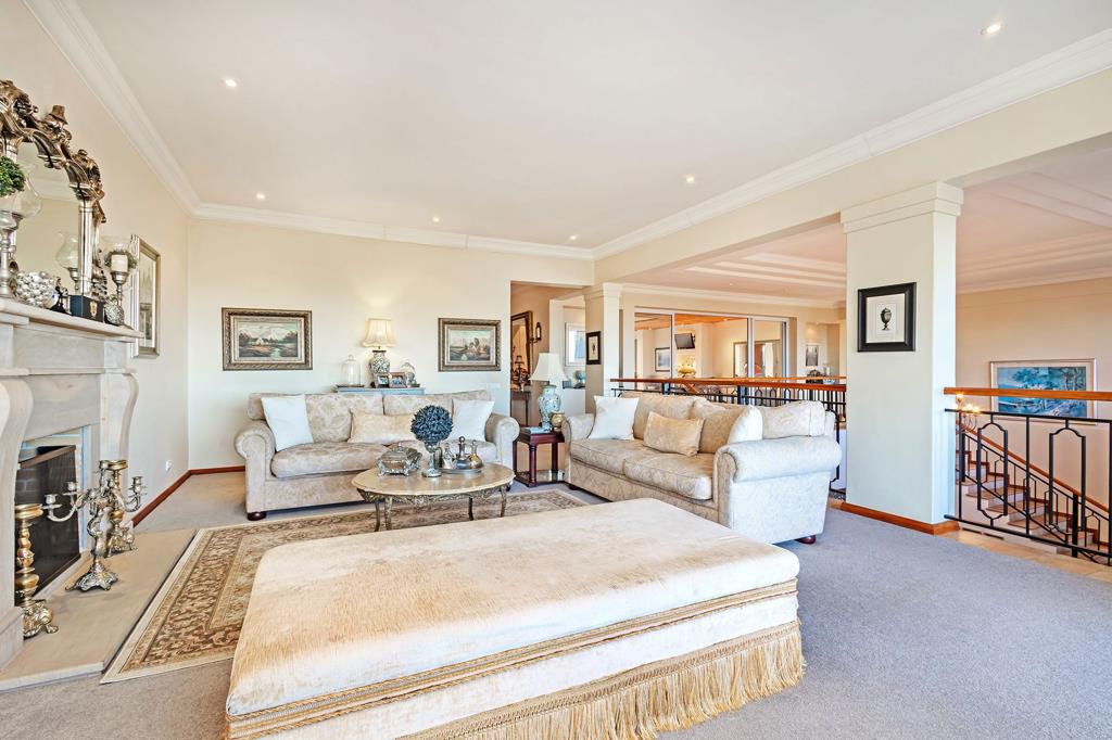 It offers a large open living area upstairs, with a gas fireplace which leads seamlessly onto the patio with awnings, complemented by breathtaking views overlooking the Boland mountains and park area. The gracious dining area is conveniently situated between the lounge and the gourmet kitchen area. The exceptionally large entertainment lounge with wood and gas braai opening with folder doors onto the pretty sparkling pool, tiled terrace with water feature. The terrace with electric awnings is excellent for outdoor entertainment, as well. Gourmet kitchen with granite and wooden cupboards and a separate laundry.