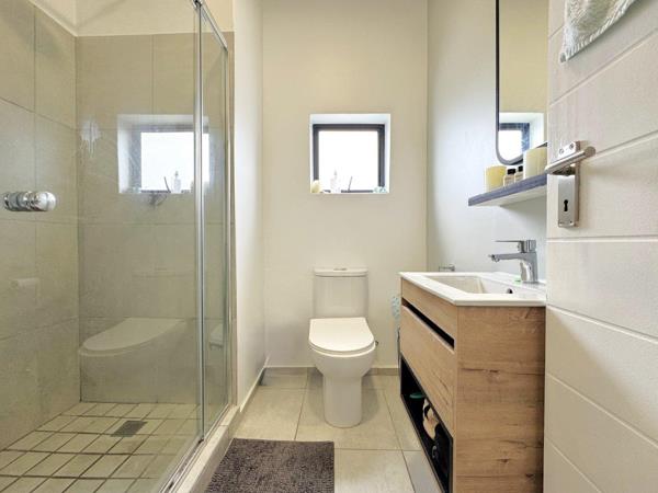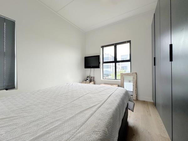 The apartment itself features a contemporary open-plan design with a well-appointed kitchen flowing into a lounge and a private balcony with a built-in braai. It includes a separate laundry nook and two bedrooms, with the main bedroom featuring an en-suite bathroom and stylish built-in cupboards. Freshly painted with high-quality fixtures and vinyl flooring throughout, the unit requires no additional expenditure. Residents benefit from a modern country lifestyle within the secure estate, which offers scenic surroundings alongside essential amenities, two covered parking bays, visitor parking, and 24-hour manned security with a private alarm system.