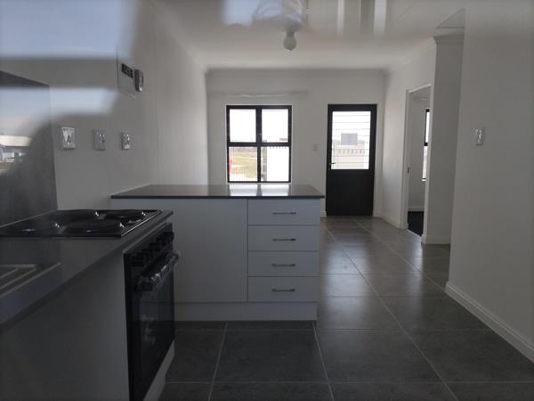 Spacious 2 bedroom house with build in cupboards. Open plan kitchen, lounge and dinning room with tile flooring. Kitchen has build in cupboard, under counter stove with hob. Property is fully enclose space for 2 cars parking with gates.
