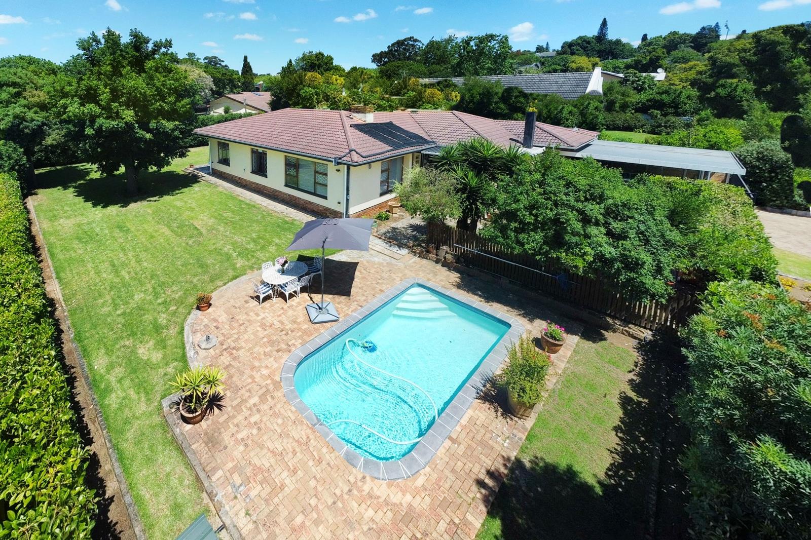 A gem in Chantecler close to Stellenberg and Eversdal Schools. Ready to move in with a formal lounge overlooking the spacious lawn and sparkling pool. The other living areas are interleading including an entertainment room with a built-in braai and a dining room which is semi-open plan to the kitchen. The kitchen is multi-functional with a spacious laundry room adjacent to it.