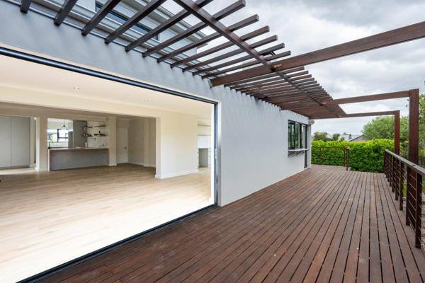 Entertainment deck with built-in braai, flowing to the pool & landscaped garden.