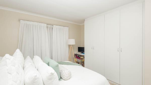 The apartment is light and airy, with a sliding door that opens onto the braai areaperfect for entertaining.