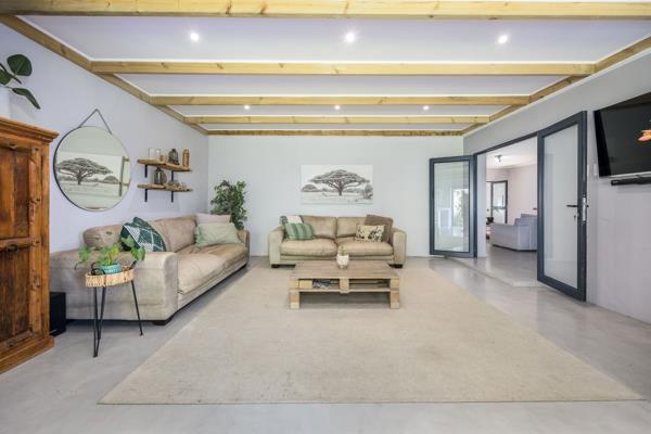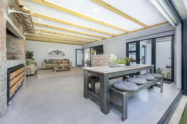 Flowing from the living area is a large entertainment space, complete with a built-in braai and stacking doors that open up to a lush, expansive garden and dedicated play area for the kids creating the perfect indoor-outdoor lifestyle.