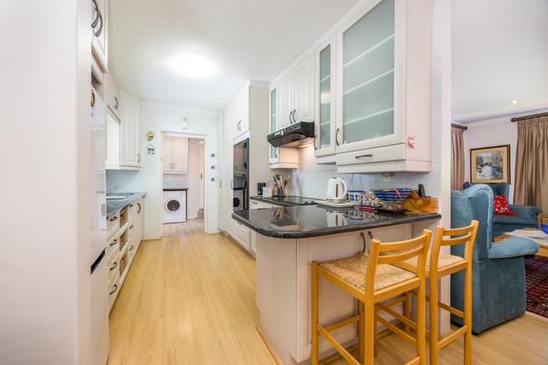 open plan kitchen and separate scullery with granite tops and plenty of cupboards. Bright and airy living areas lounge and dining with laminated flooring.