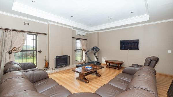 This property boast a manor house with 5 bedrooms with full bathrooms, a beautiful entrance hall, dining room, family room, tv room, study, storage outside entertainment area, lapa with swimming pool, built in braai , pizza oven, security cameras,alarm system house to gate and house to house intercom, 20 kw Solar panels, Inverter, diesel generator.store room, double garage, ample parking , 2 wendy houses with geysers and electricity, 3 5000L water tanks, 2 wendy houses with its own geysers and prepaid meters