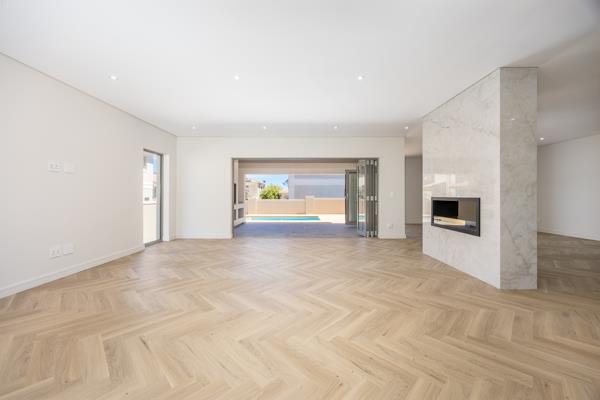 Stacking doors leading to the covered braai area, sparkling pool, and wooden deckperfect for entertaining.
