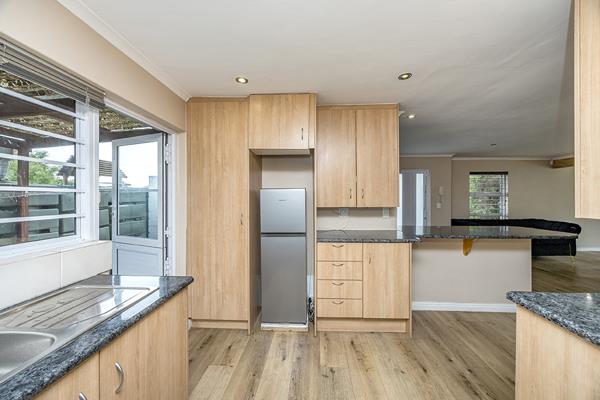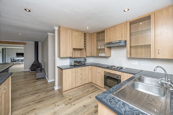 The well appointed kitchen includes an electric hob and ample cupboard space, with direct access to the courtyard. The main bedroom boasts a walk-in closet and a beautifully updated en-suite bathroom. Two additional bedrooms share a full family bathroom, while the fourth bedroom is privately located in a side wing. Passage cupboards lead to this bedroom, which also has its own entrance to the courtyard, making it perfect as a teen pad, guest suite, or dedicated office.