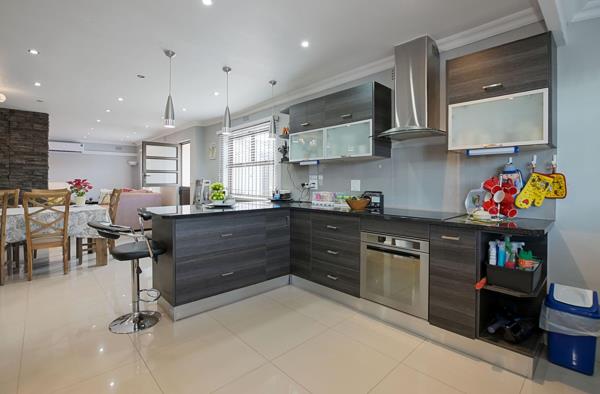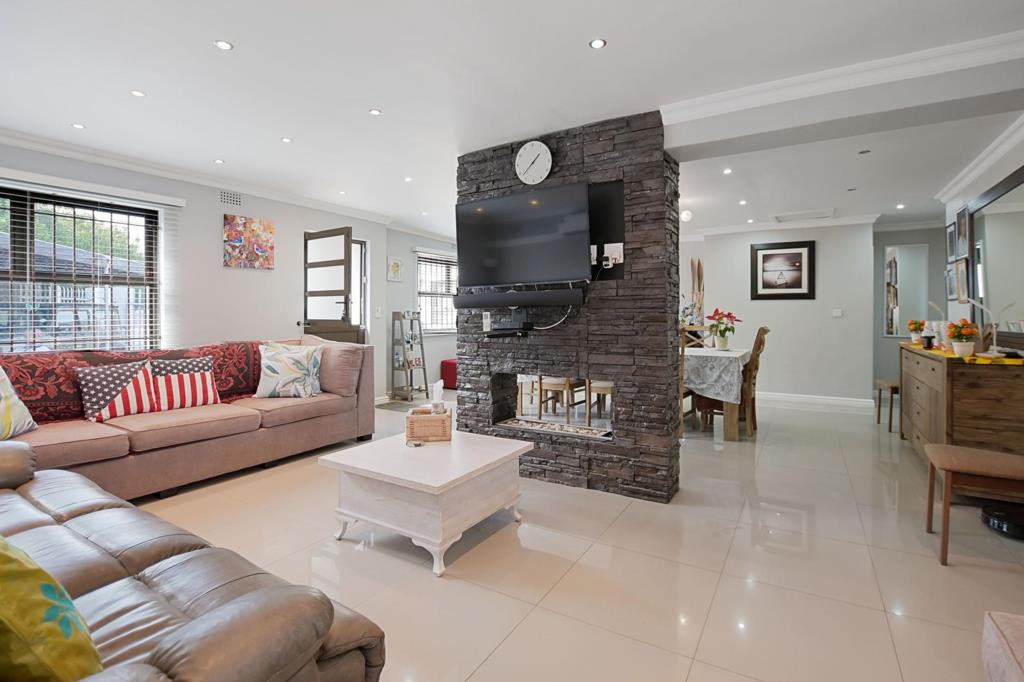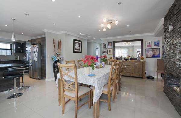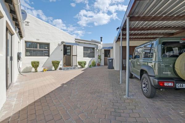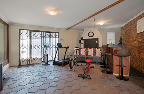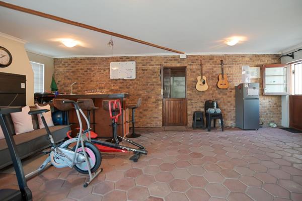 The main house welcomes you into an open plan kitchen, built in cupboards and plumbed for appliances, oven, hob & extractor fan. The open plan lounge and dining area space stays comfortable year round with a gas heater and aircon together with a separate entertainment area with built in braai & bar which becomes the heart of weekend gatherings. There is even an additional space behind the garage, already plumbed for appliances and opening to the outside back paved garden with a sliding door.