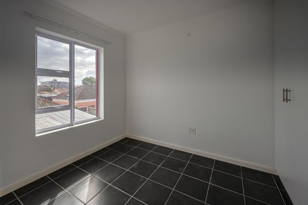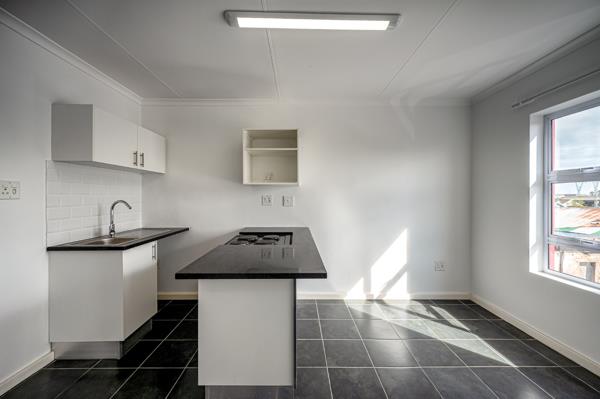 Upon entering this apartment you will find a spacious open-plan lounge and kitchen. The lounge features tiled flooring and aluminium window frames. The charming kitchen offers modern fitted cupboards, plumbing for a washing machine, an under-counter oven and hob, a sink and space for a fridge.