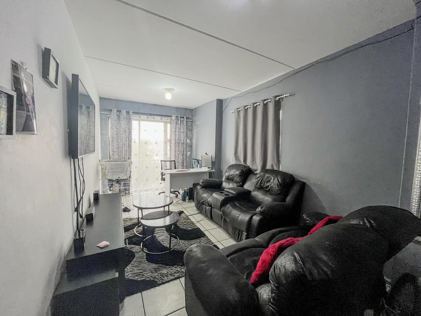 The is 2 Bedroom apartment is located on the first floor and situated at an ideal corner spot. Open planned living room and kitchen area with built in cupboards. Tiled flooring throughout apartment. First Bedroom with built in cupboards. Second bedroom with built in cupboards. Bathroom fitted with bath, basin, shower and 1 plumbing point for your washing machine.