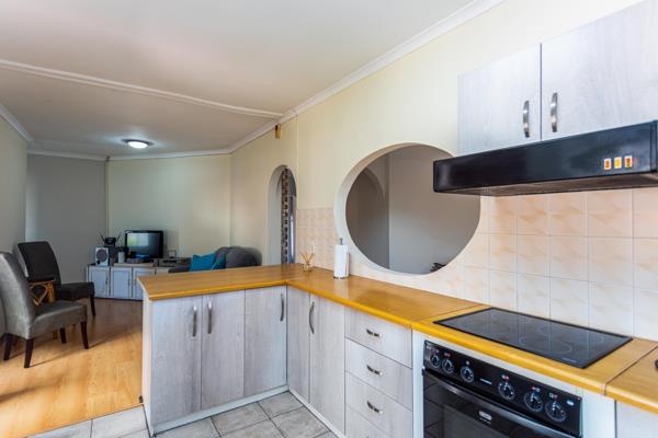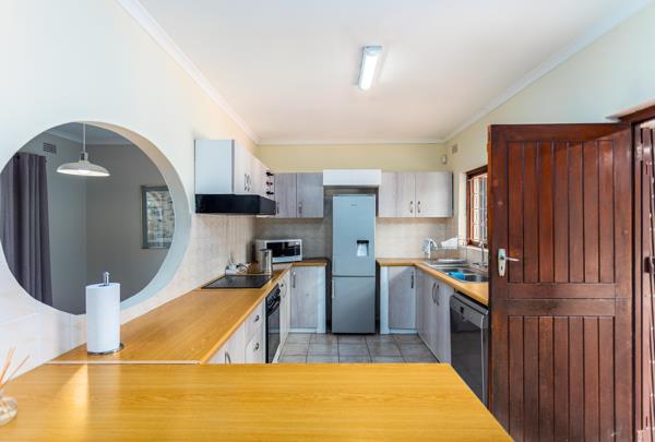 Spacious kitchen with built-in oven & hob, dining area, and lounge