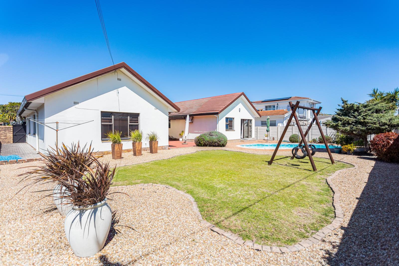 Expansive undercover braai area leading out to a pristine, paved back garden with a sparkling pool
