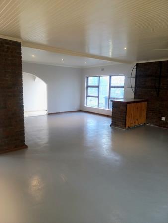 Step inside to discover a spacious and versatile open-plan living environment, spanning 263 sqm. The interior features modern polished grey flooring, freshly painted neutral walls, and contemporary recessed and track lighting, creating a bright and inviting atmosphere. Elegant arched doorways connect various zones, while exposed brick accents and distinctive paneled ceilings add character. The layout includes a dedicated lounge, a dining room, and a family TV room, alongside a built-in bar area perfect for entertaining.
