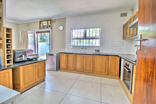 All windows are fitted with aluminium frames, attractive burglar bars, and secure gates. Only the sliding doors leading to the pool feature wooden frames. The home is also equipped with a camera system connected to an app for added peace of mind.