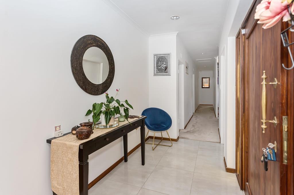 The main bedroom is a peaceful retreat, boasting abundant natural light, a walk-in closet, an en-suite bathroom, and direct garden access. All three bedrooms offer comfort and style with brand-new wool carpets and built-in cupboards. The home also includes two spacious full bathrooms with bathtubs and showers, a separate guest toilet near the living areas, and an additional half bathroom in the laundrydomestic quarters with direct garage access for added ease.