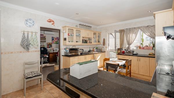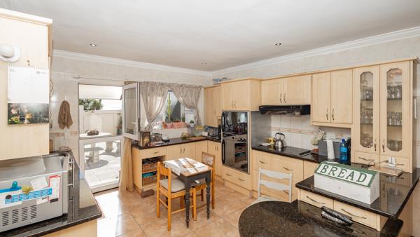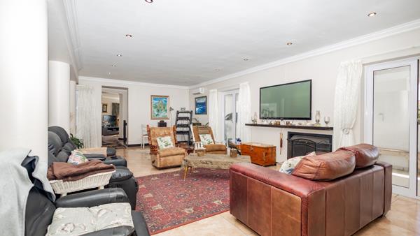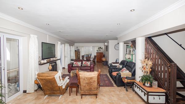 Positioned on a corner plot, this versatile residence is ideal for a large family or dual living, offering generous accommodation and multiple reception areas. Upon entering, a welcoming entrance hall leads to a separate tiled lounge, where large windows frame beautiful mountain and sea views. Glass doors open onto a paved gardenperfect for relaxed entertaining.