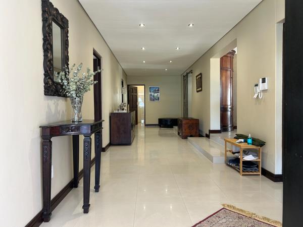 Sustainability meets convenience with a separate laundry room and storage space equipped with rainwater harvesting for eco-friendly washing. Additional features include an inverter system ensuring uninterrupted power supply, 5000-litre Jojo water storage tanks and a comprehensive security system comprising an electric fence, automated gate and double garage for secure parking and easy access.