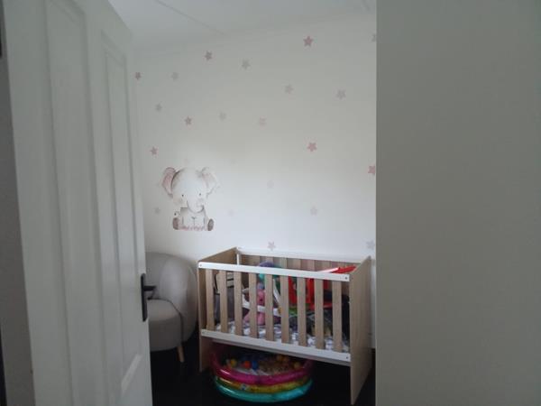 The home features a warm and inviting lounge fitted with beautiful wooden flooring, creating a cosy space for relaxation. The kitchen is well-appointed with built-in cupboards, a fitted stove and oven, and a convenient plumbing point to accommodate your appliances.