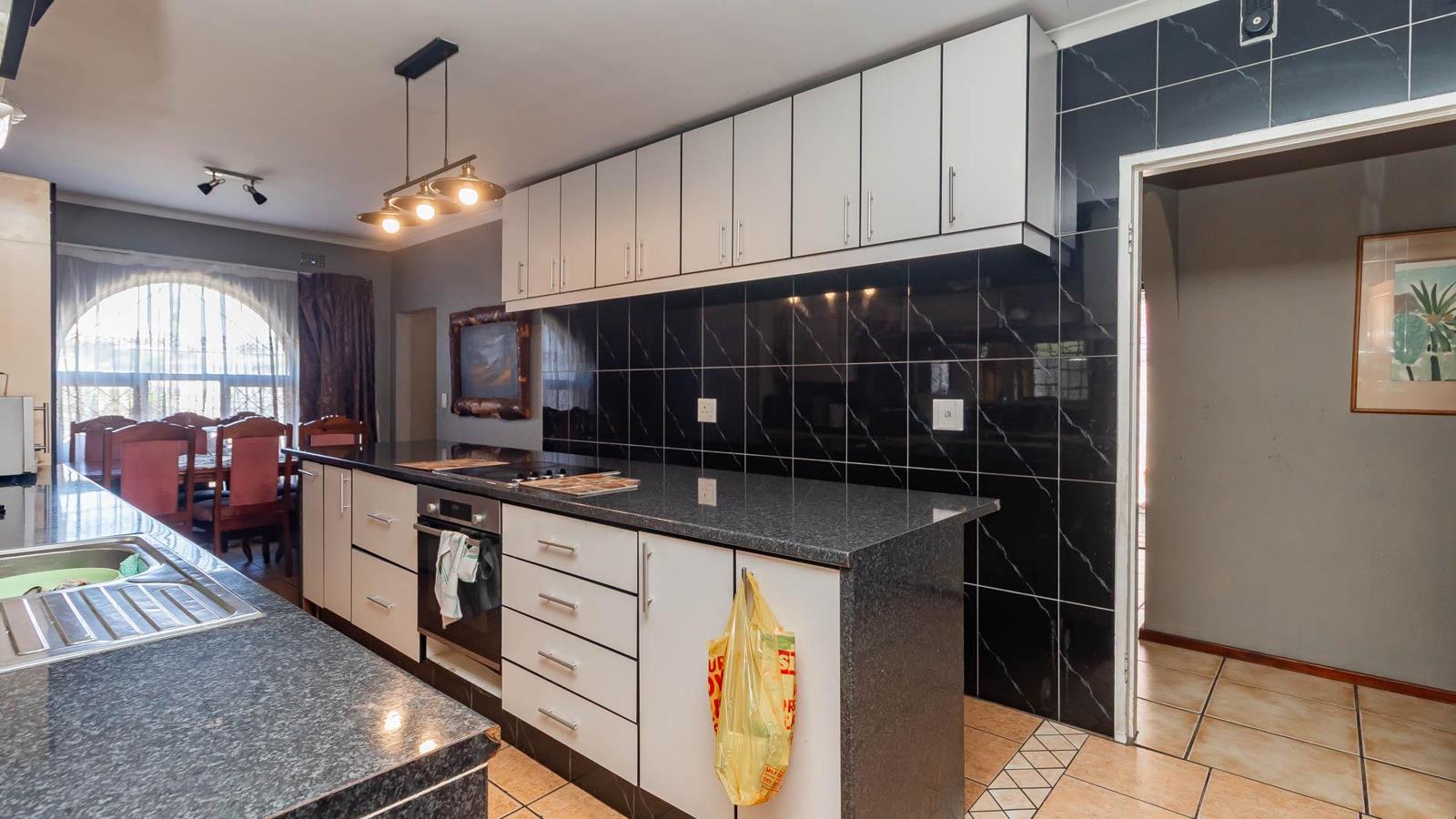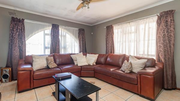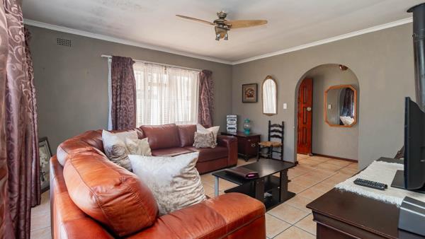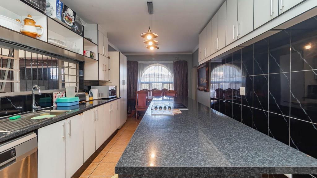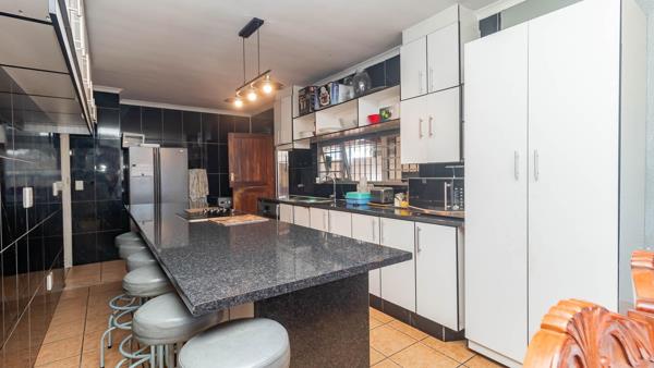 The property features a large kitchen and dining area, ideal for family meals, and a cozy lounge with a fireplace for those chilly evenings. Safety is a priority with burglar bars and aluminium windows throughout.