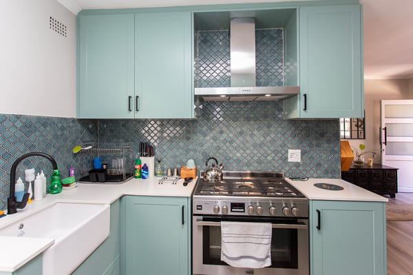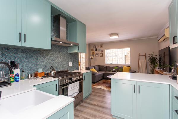 The ultra-modern, open plan kitchen will keep the chef happy, with ample cupboards and up market finishes, a free-standing gas stove, electric oven with an extractor fan.