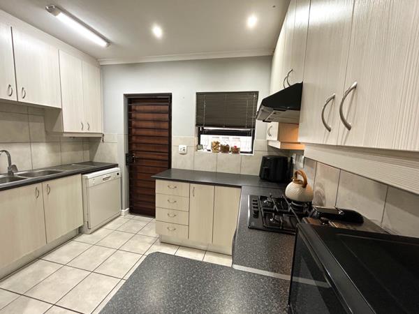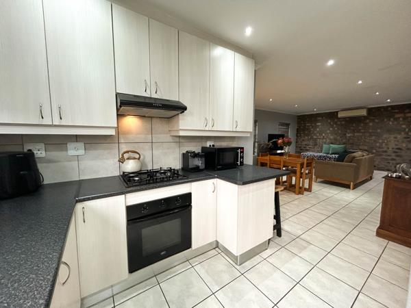 Additional features include a double garage with an electric door, one open parking bay inside the yard, prepaid electricity, a borehole, and electric fencing for extra peace of mind. An alarm system is also in place to ensure your familys safety.
