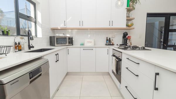 This well-located double-story family home, situated in a secure gated community, offers both comfort and convenience. Upon arrival, a striking pivot door welcomes you into a bright and modern living space. The open-plan kitchen boasts sleek, contemporary finishes and flows effortlessly into the living area, which features stacker doors leading to an open patio with an outdoor braaiperfect for entertaining.