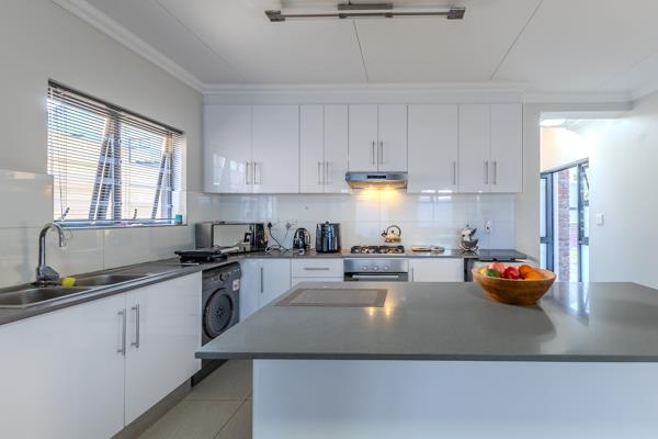 Upstairs, youll find three spacious bedrooms, offering privacy and plenty of room for relaxation, along with two beautifully finished bathrooms and a convenient guest toilet. The open-plan living areas create an inviting flow, seamlessly connecting the stylish kitchencomplete with a large island and sleek finishesto the living room, indoor braai area, and pet-friendly garden. Whether youre entertaining guests or enjoying family time, this layout is designed for modern living.