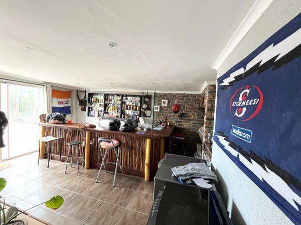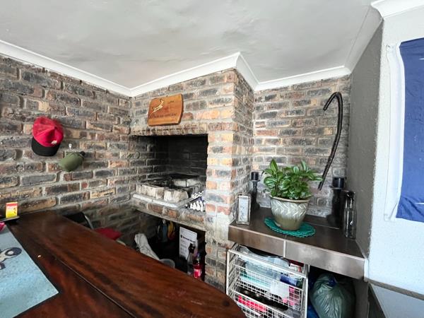 Enjoy an open-plan living area with a braai room, well-sized 3 bedrooms and a functional kitchen with wooden counters and build in cupboards.