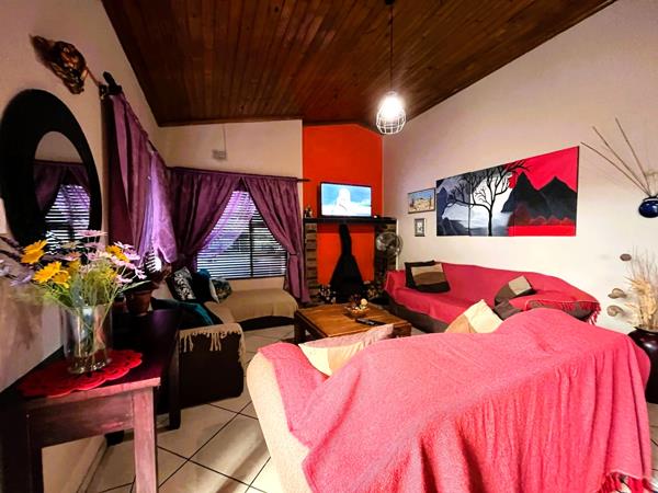 The separate flatlet offers privacy and versatility. It boasts its own entrance and features an open-plan lounge and kitchen, both tiled, with the lounge including its own fireplace.