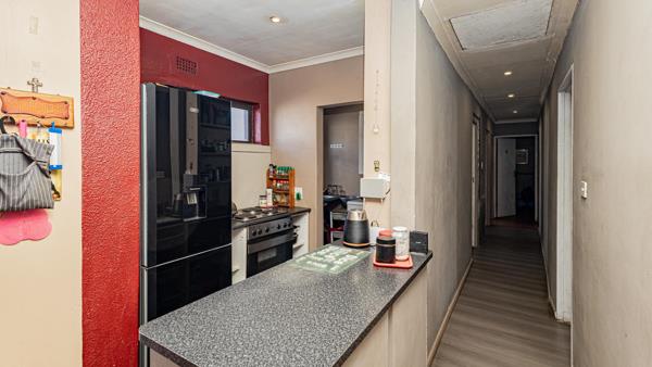 Cooking is a pleasure in the open-plan kitchen, complete with built-in cupboards, an electrical hob and oven, and durable melamine countertop. The separate laundry room and scullery, along with a handy dishwasher outlet, make daily living even easier.