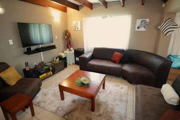 Outside, the property has a back garden, a patio, and a paved area, along with the swimming pool and the built-in jacuzzi under a custom-made shaded cover. The property allows pets. Other features include an indoor built-in braai, fibre internet, and prepaid electricity.