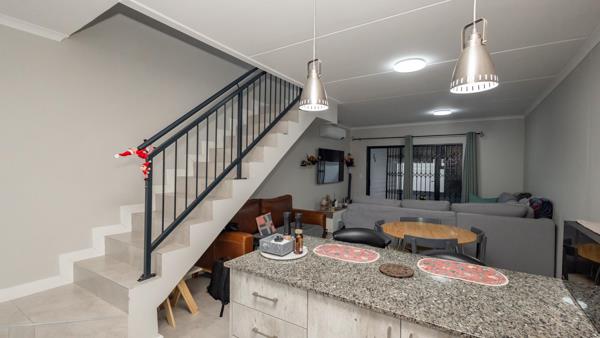 When you enter the front door you will be welcomed with modern finishes and an open plan kitchen with extra cupboard space to make your cooking experience one of a kind. The kitchen is equipped with a gas hob, granite tops and cupboards to the ceiling. From the living area it leads to a covered braai area, perfect to host friends or family.