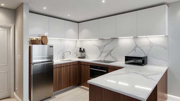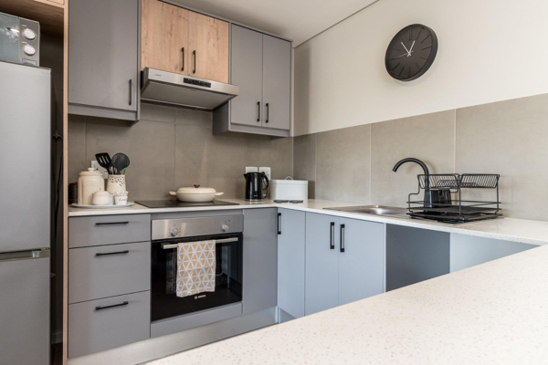 - Experience a cozy yet comfortable living space featuring stylish Caesarstone countertops, an electric hob, an under-counter oven, and built-in cupboards.