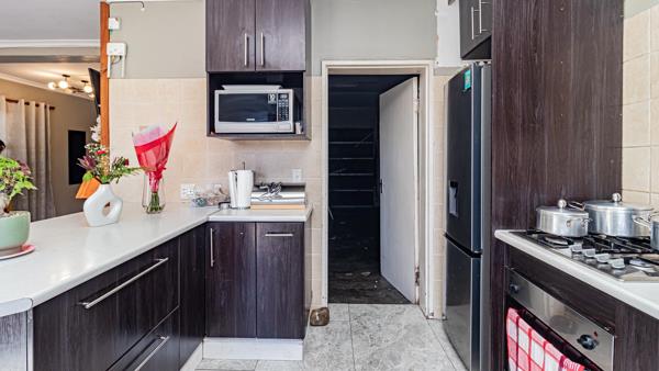 The home welcomes you with a spacious and inviting lounge, perfect for relaxing with family or entertaining guests. The fully fitted kitchen offers ample cupboard space and direct access to the garage, ensuring everyday practicality and ease of living.