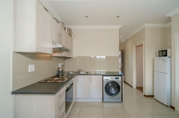 The open-plan layout creates a seamless flow between the kitchen and living area, with a sliding door that opens directly onto your private paved courtyardperfect for outdoor dining and entertaining.