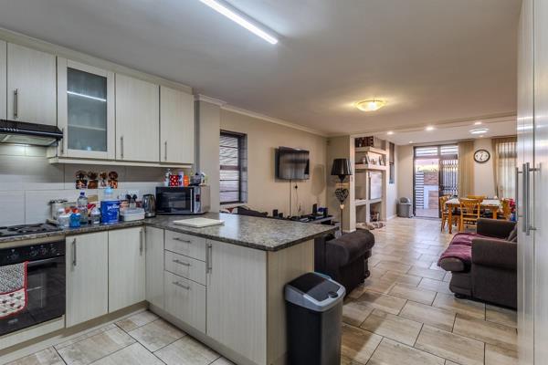 The home welcomes you with a spacious open-plan tiled living area that flows into a dedicated indoor braai room, perfect for entertaining throughout the year. Sliding doors open onto a private, low-maintenance back garden and a covered tandem carport.