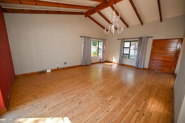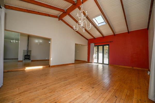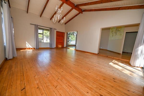 Large family room with wooden floors