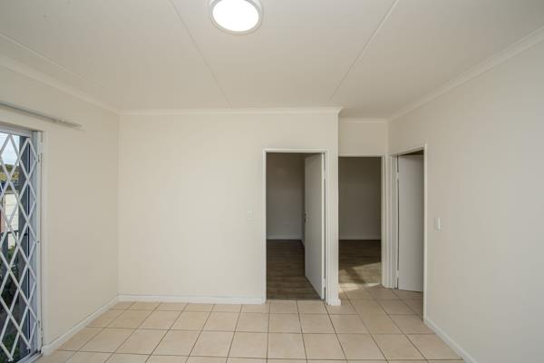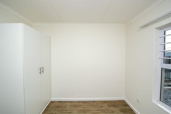 Upon entering the apartment, you will find the inviting open-plan lounge and kitchen with built-in-cupboards and 4 plate stove. The generously sized lounge features tiled flooring and extends seamlessly to delightful communal gardens through a sliding door. Both bedrooms with laminated floors and built-in-cupboards. Bathroom with hand basin, toilet pot & shower.