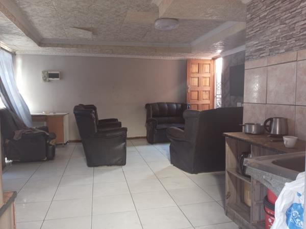 The two-bedroom home has a floor mat in the master bedroom, a shared bathroom with toilet, bath and basin, tiles in the second bedroom, an open-concept living area, a dining area, and a built-in cabinet with a sink. One undercover parking garage and a flat in the garage
