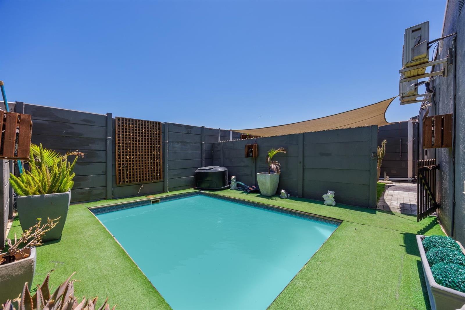 The lounge, leads to a large braairoomentertainment area and has a sliding door which opens to the backyard with covered shadecloth for very hot summer days and a splash pool cordoned off for childrens safety.
