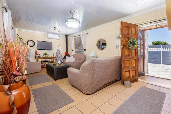 On entering, you have a well-sized lounge area with Jetmaster fireplace. The kitchen has ample cupboards, 1 water point and dryer space if needed. The passage leads to the 3 bedrooms, guest toilet and bathroom with shower only. 2 of the 3 bedrooms have built-in cupboards and the main bedroom is the larger room, which comfortably fits a double bed.