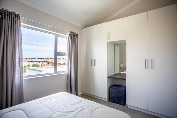 Upstairs - 2 x Bedrooms with built-in cupboards / full bathroom (shower-basin-toilet and bath) and linen cupboards for extra storage.