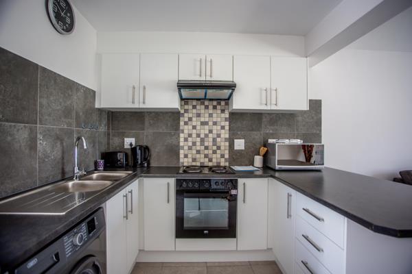 Downstairs - Guest toilet (basin & toilet) / Fitted kitchen with brand new appliances which includes - stove top/oven & extractor fan / open plan lounge that has sliding doors leading out to communal outside area.