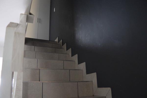 Heading upstairs, there are two well-sized bedrooms, each boasting built-in cupboards and tiled flooring. The family bathroom is tastefully designed and offers a shower, bathtub, basin, and toilet.