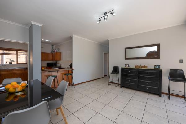 The home offers three generously sized bedrooms, each fitted with built-in cupboards, providing ample storage space for the whole family. The master bedroom includes an en-suite bathroom with a bathtub, basin and toilet. The modern family bathroom is fitted with a shower, basin, and toilet, serving the rest of the home.