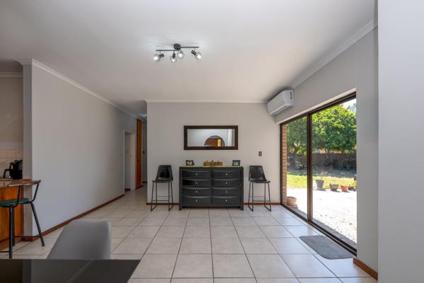 The welcoming lounge offers a comfortable space to relax and unwind, while the dedicated office area is perfect for those who work from home or need a quiet study space. The dining room features an air-conditioning unit and a sliding door opening up to the backyard. The open-plan kitchen is designed for both functionality and style, offering plenty of countertop space, built-in cupboards, and a separate scullerylaundry for added convenience.
