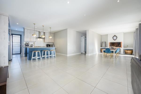 The heart of the home is an open plan living area that seamlessly combines the lounge, dining room and braai room.