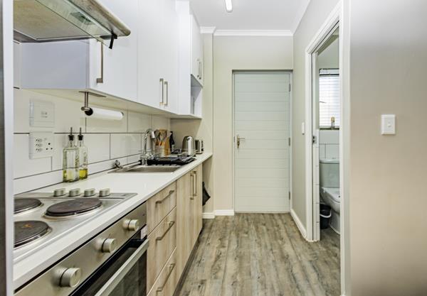 ADDED BONUS! EXTRA PARKING! Besides an open parking bay, this apartment also comes with a COVERED CAR PORT! The open plan living and sleeping area features a modern open plan kitchen and separate bathroom with shower, toilet, basin and mirror with trendy fittings. The entire unit has high quality vinyl flooring throughout. The kitchen is fitted with white engineered stone counter tops. The kitchen and bathroom backsplash both feature beautiful large format subway tiles. The Estate, guarded by 24h manned security, has so much to offer! Enjoy the clubhouse with entertainment facilities and a swimming pool where residents can socialize around the braai areas. There is also a safe play area for kids and a drop-and-collect laundry service available. It also offers ample visitors parking. With the estate centrally located close to access routes, shopping malls, schools, hospitals and golf course, it is also ideal for a student studying at the University of Stellenbosch, only 15 minutes away. Contact me today. Do not miss out!