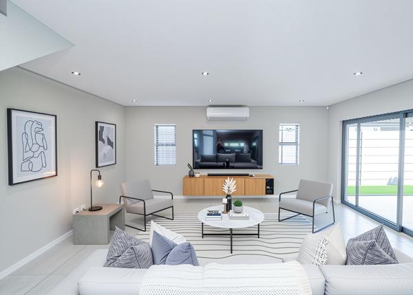 Three spacious bedrooms with modern built-in cupboards, including a master with en-suite and stunning views of the Stellenbosch mountains and Kuils River Golf Course.