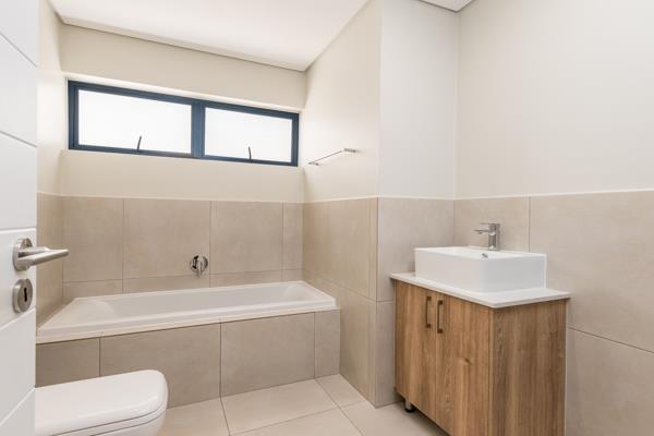 2 sleek bathrooms with modern finishes and downstairs guest bathroom